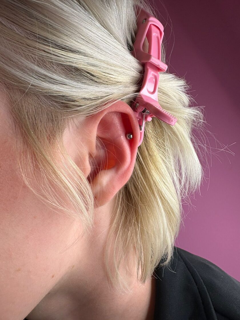 Process ir ļoti ātrs- speciālists pīrsingu dur ar īpašu adatu. Materiāli un instrumenti ir sterilizēti. Adatas- vienreizlietojamas! Vai tas sāp? Gribētos teikt, ka nē! No sākuma pārrunāsim kur un kādu pīrsingu liekam. Izvēlei ir plašs pīrsingu piedāvājuma klāsts. Tad nodezinficēsim ausi, iezīmēsim punktiņu kur tiks durts pīrsings. Ašs dūriens ar adatiņu un tad pārslidina adatu uz pīrsinga rotu, aizskrūvē un viss gatavs! Pīrsingus dur sertificēti meistari.